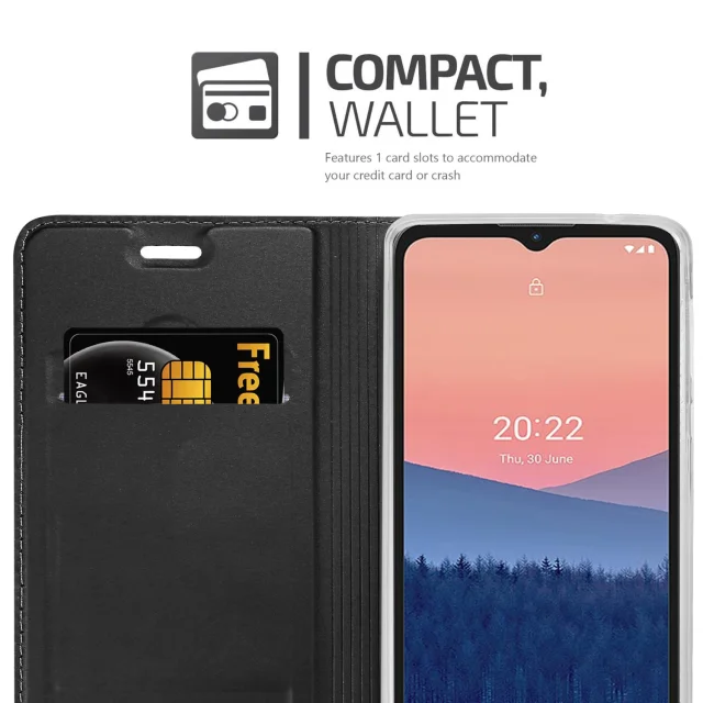 Cadorabo Case, združljiv z Nokia v elegantnem črnem - zaščitnem pokrovu z magnetnim zapiranjem, stoječo funkcijo in režo za kartico