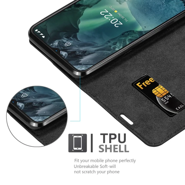 Cadorabo Case, združljiv z Nokia v nočni črni barvi - zaščitni pokrov z magnetnim zapiranjem, stoječo funkcijo in režo za kartico
