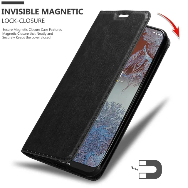 Cadorabo Case, združljiv z Nokia v nočni črni barvi - zaščitni pokrov z magnetnim zapiranjem, stoječo funkcijo in režo za kartico