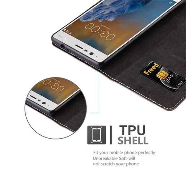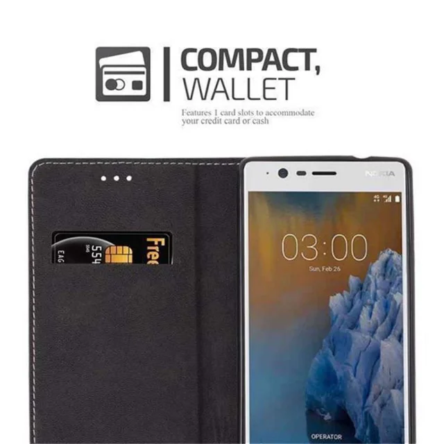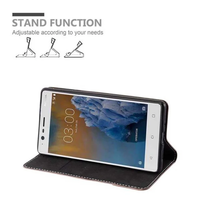 Cadorabo Case, združljiv z Nokia v rose Gold Black - zaščitni pokrov z magnetnim zapiranjem, stoječo funkcijo in režo za kartico
