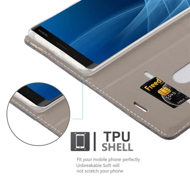 Cadorabo Case, združljiv z Nokia v sivi črni barvi - zaščitni pokrov z magnetnim zapiranjem, stoječo funkcijo in režo za kartico
