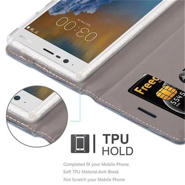 Cadorabo Case, združljiv z Nokia v temno modri črni barvi - zaščitni pokrov z magnetnim zapiranjem, stoječo funkcijo in režo za kartico