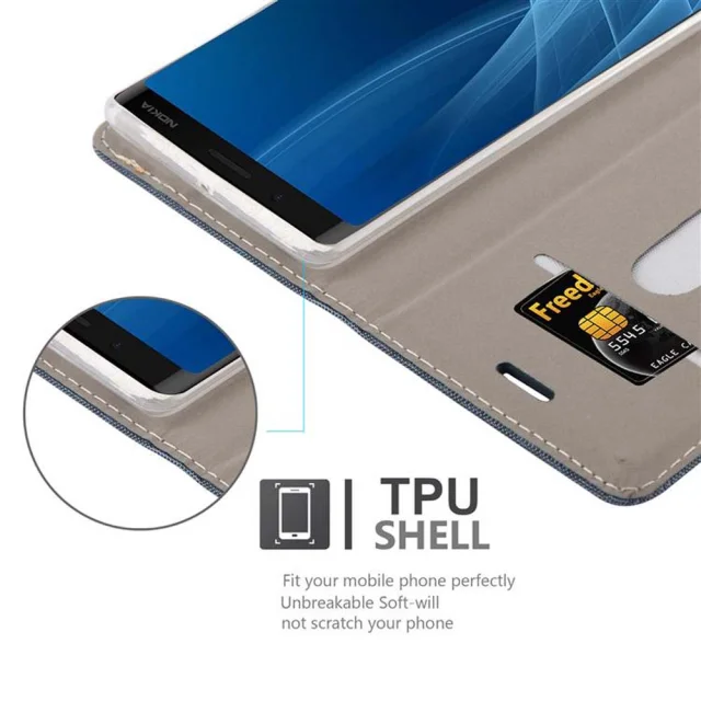 Cadorabo Case, združljiv z Nokia v temno modri črni barvi - zaščitni pokrov z magnetnim zapiranjem, stoječo funkcijo in režo za kartico
