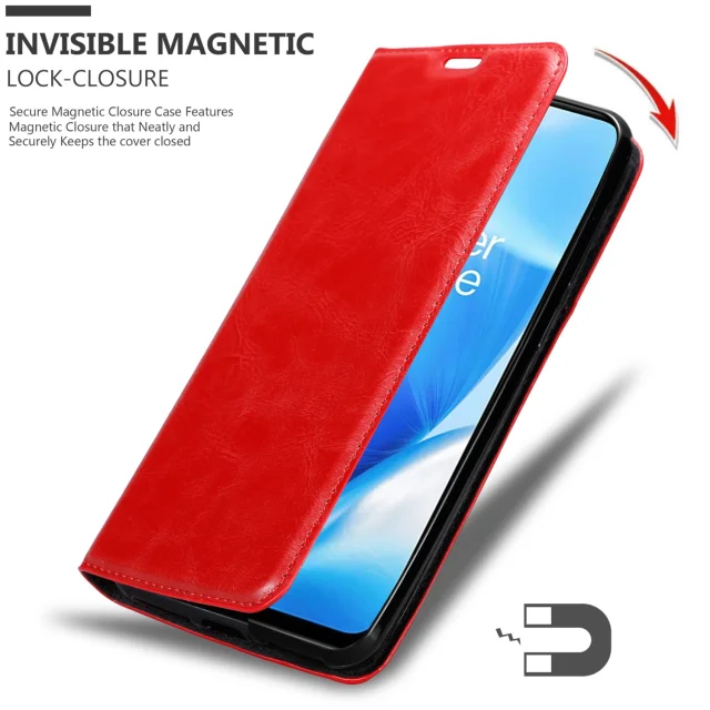 Cadorabo Case, združljiv z OnePlus v Apple Red - Zaščitni pokrov z magnetnim zapiranjem, stoječo funkcijo in režo za kartico