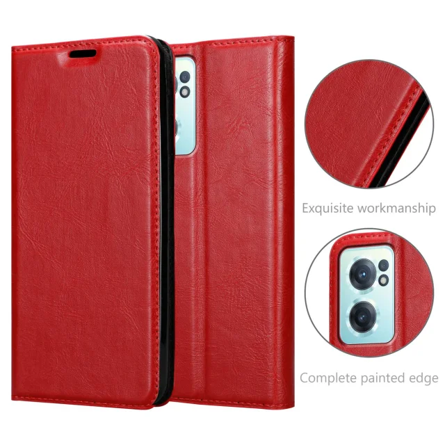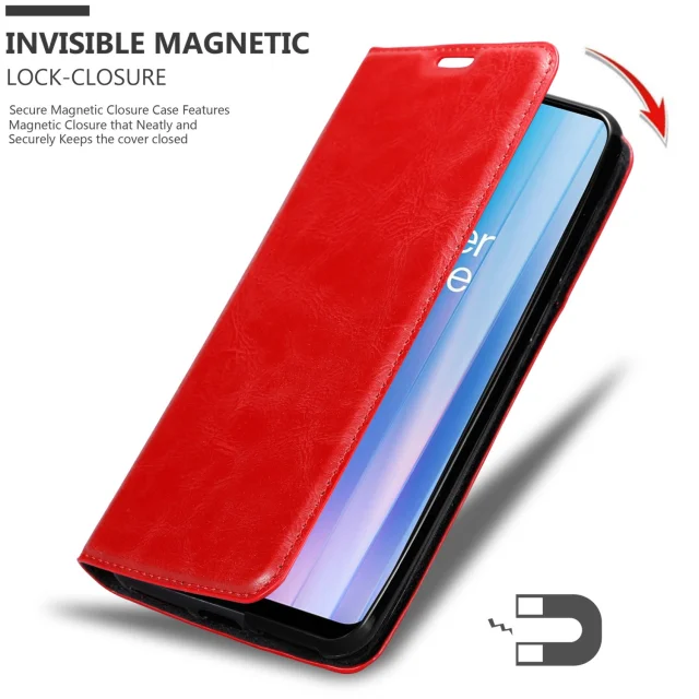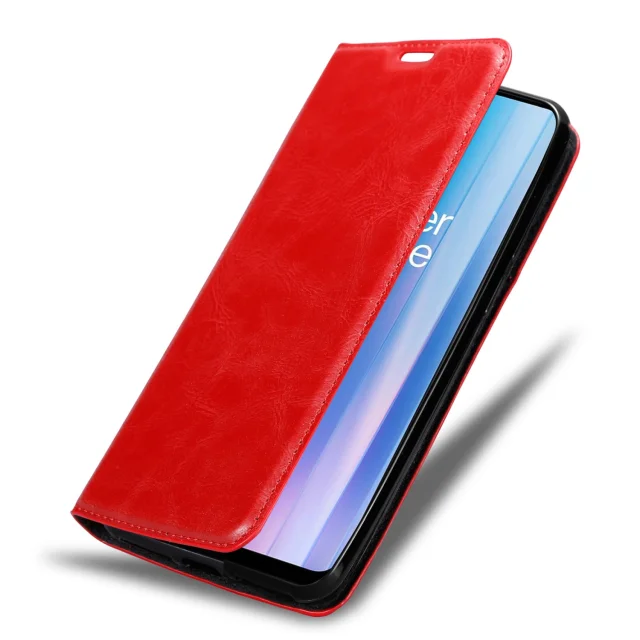 Cadorabo Case, združljiv z OnePlus v Apple Red - Zaščitni pokrov z magnetnim zapiranjem, stoječo funkcijo in režo za kartico