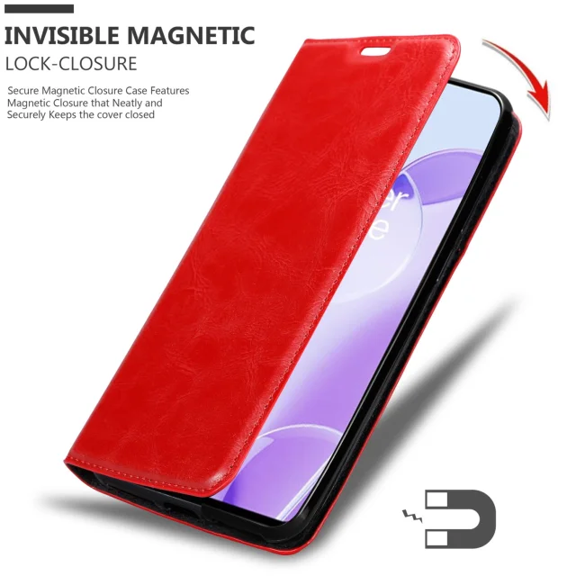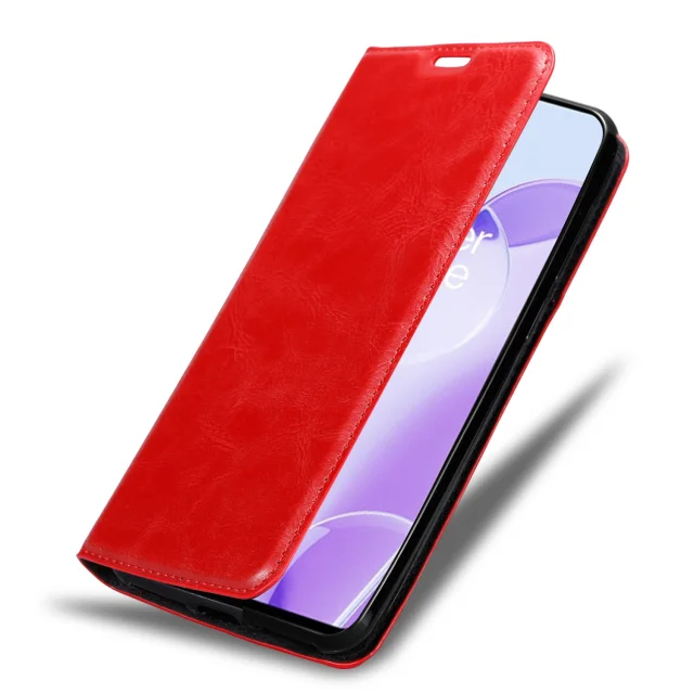 Cadorabo Case, združljiv z OnePlus v Apple Red - Zaščitni pokrov z magnetnim zapiranjem, stoječo funkcijo in režo za kartico