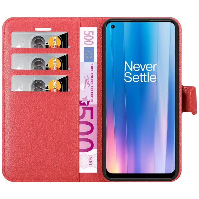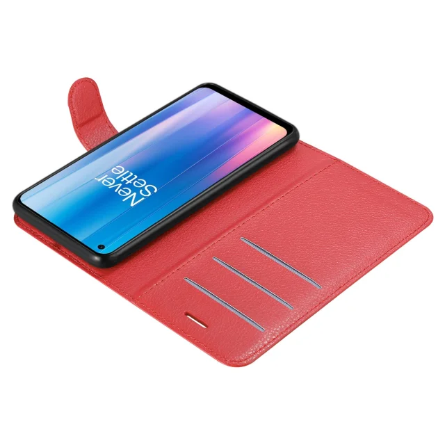 Cadorabo Case, združljiv z OnePlus v Candy Apple Red - Zaščitni pokrov z magnetnim zapiranjem, stoječo funkcijo in režo za kartico