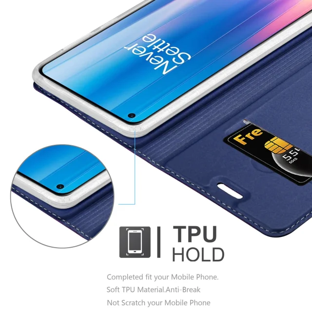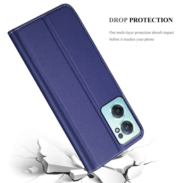 Cadorabo Case, združljiv z OnePlus v elegantno temno modri - zaščitni pokrov z magnetnim zapiranjem, stoječo funkcijo in režo za kartico