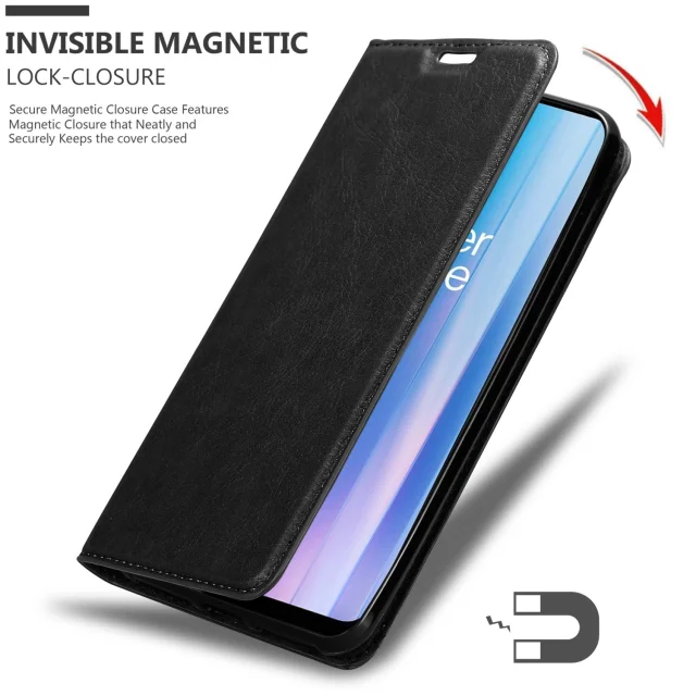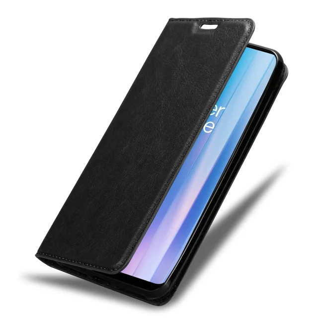 Cadorabo Case, združljiv z OnePlus v Night Black - Zaščitni pokrov z magnetnim zapiranjem, stoječo funkcijo in režo za kartico