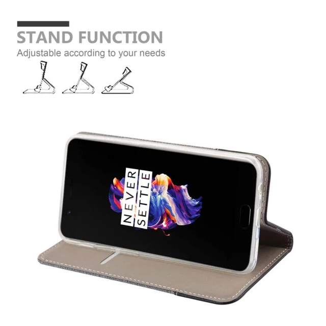 Cadorabo Case, združljiv z OnePlus v sivi črni barvi - zaščitni pokrov z magnetnim zapiranjem, stoječo funkcijo in režo za kartico