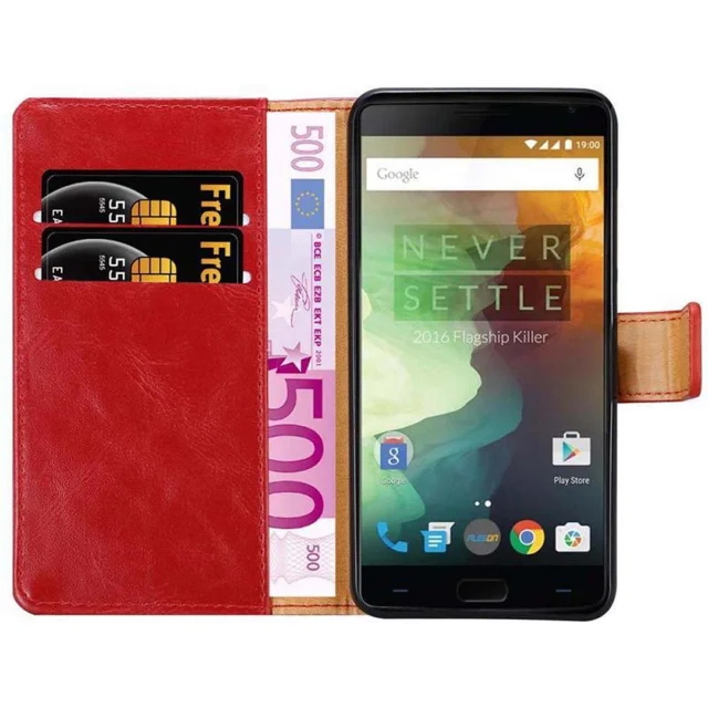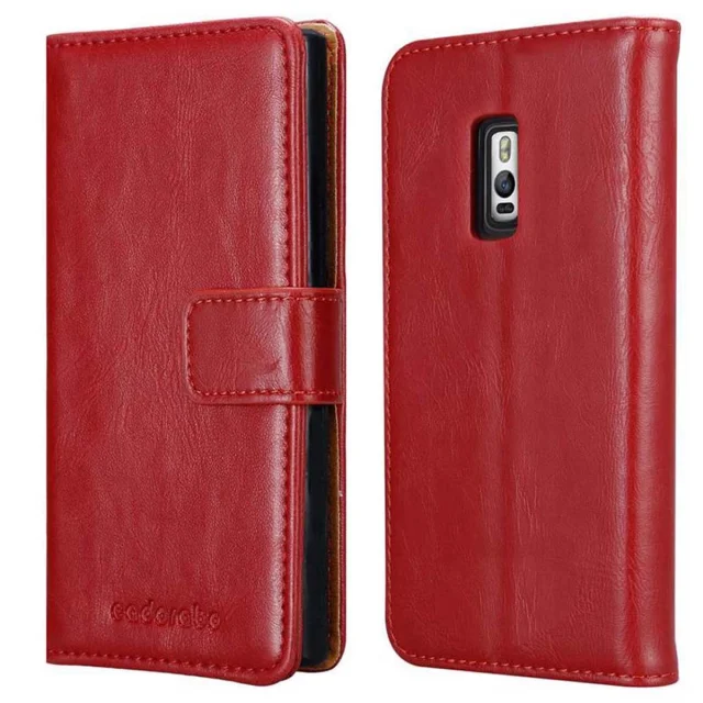 Cadorabo Case, združljiv z OnePlus v vinu rdeči - zaščitni pokrov z magnetnim zapiranjem, stoječo funkcijo in režo za kartico