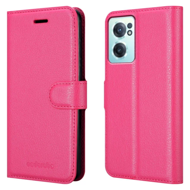 Cadorabo Case, združljiv z OnePlus v vroče roza barvi - zaščitni pokrov z magnetnim zapiranjem, stoječo funkcijo in režo za kartico