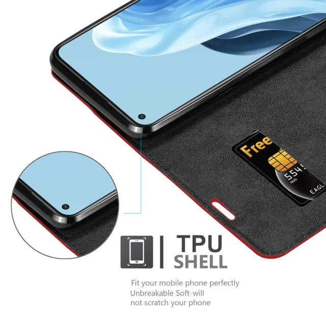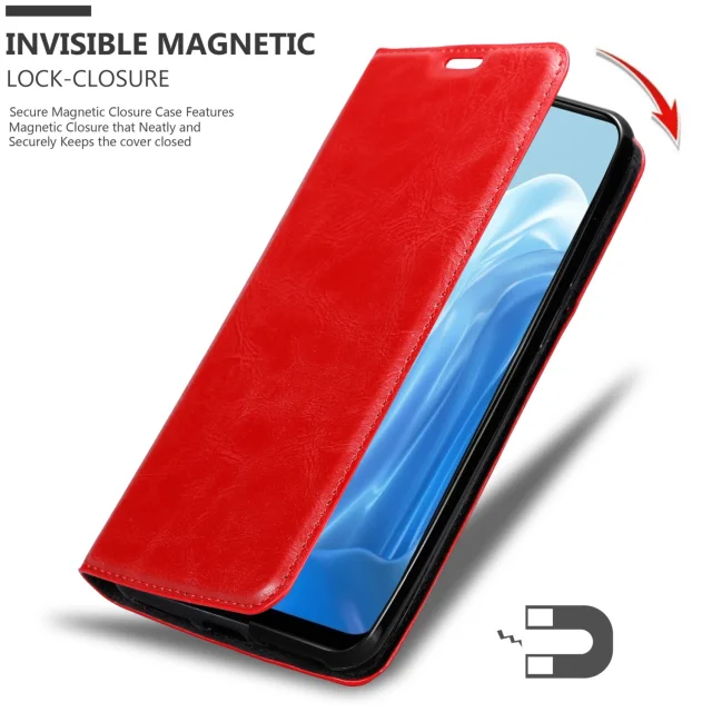 Cadorabo Case, združljiv z OPPO v Apple Red - Zaščitni pokrov z magnetnim zapiranjem, stoječo funkcijo in režo za kartico