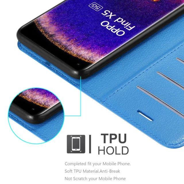 Cadorabo Case, združljiv z OPPO v nebesno modro barvo - zaščitni pokrov z magnetnim zapiranjem, stoječo funkcijo in režo za kartico