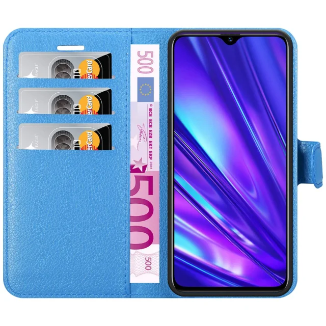 Cadorabo Case, združljiv z Realme in Sky Blue - Zaščitni pokrov z magnetnim zapiranjem, stoječo funkcijo in režo za kartico