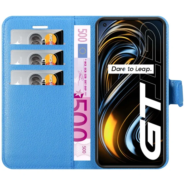 Cadorabo Case, združljiv z Realme in Sky Blue - Zaščitni pokrov z magnetnim zapiranjem, stoječo funkcijo in režo za kartico