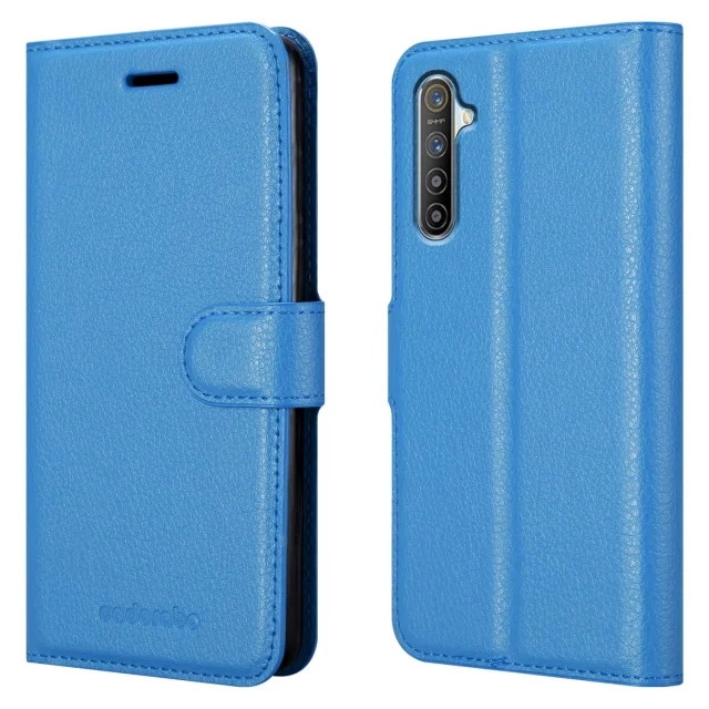 Cadorabo Case, združljiv z Realme in Sky Blue - Zaščitni pokrov z magnetnim zapiranjem, stoječo funkcijo in režo za kartico