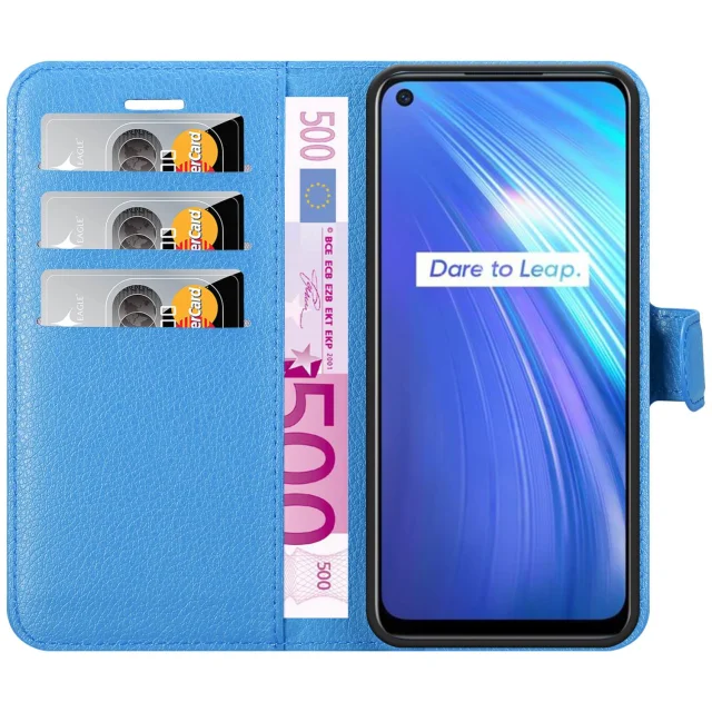 Cadorabo Case, združljiv z Realme in Sky Blue - Zaščitni pokrov z magnetnim zapiranjem, stoječo funkcijo in režo za kartico