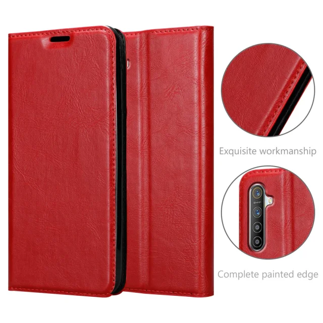 Cadorabo Case, združljiv z Realme v Apple Red - zaščitni pokrov z magnetnim zapiranjem, stoječo funkcijo in režo za kartico