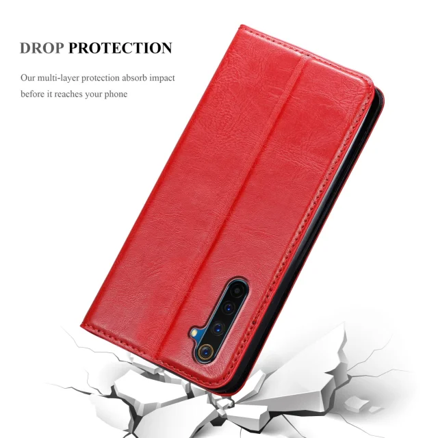 Cadorabo Case, združljiv z Realme v Apple Red - zaščitni pokrov z magnetnim zapiranjem, stoječo funkcijo in režo za kartico