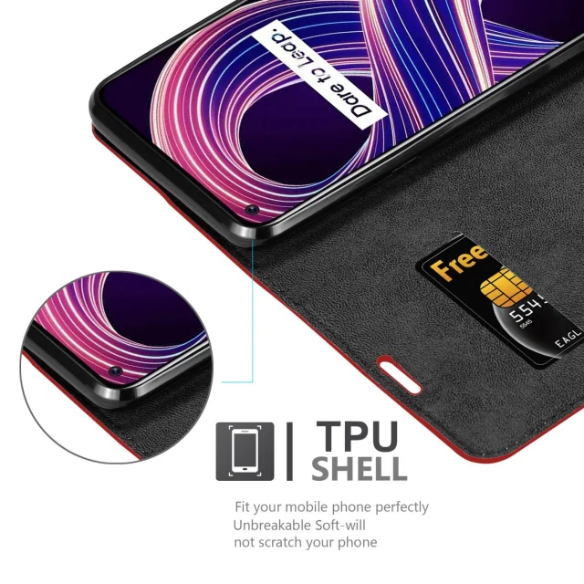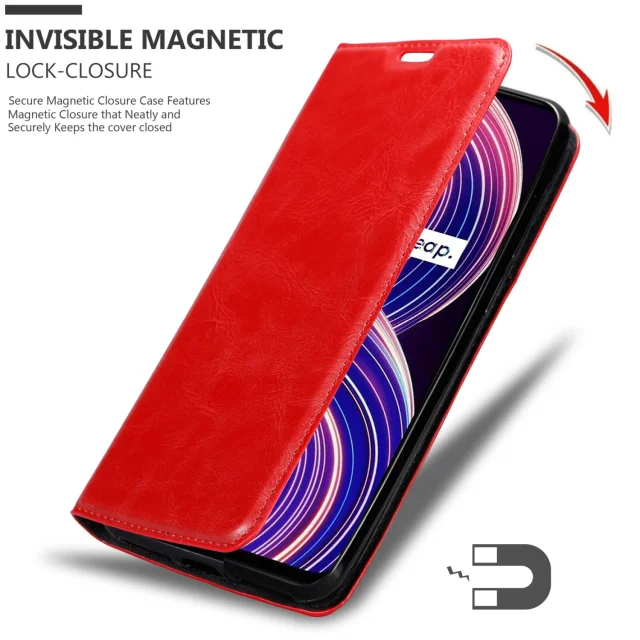 Cadorabo Case, združljiv z Realme v Apple Red - zaščitni pokrov z magnetnim zapiranjem, stoječo funkcijo in režo za kartico