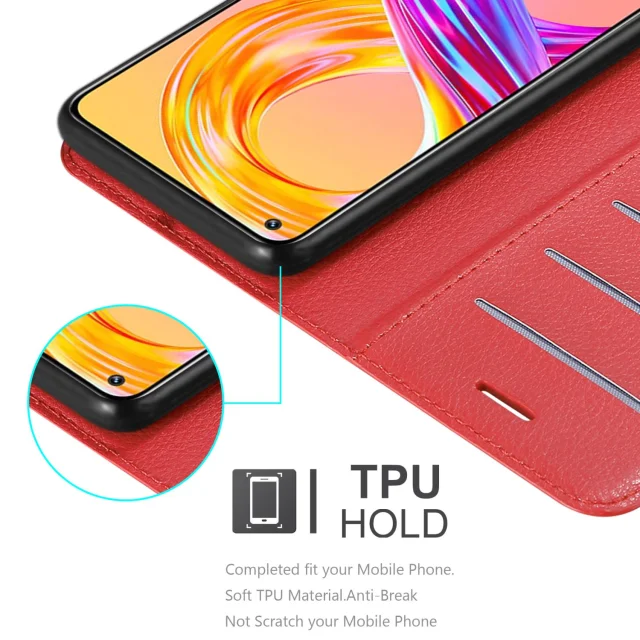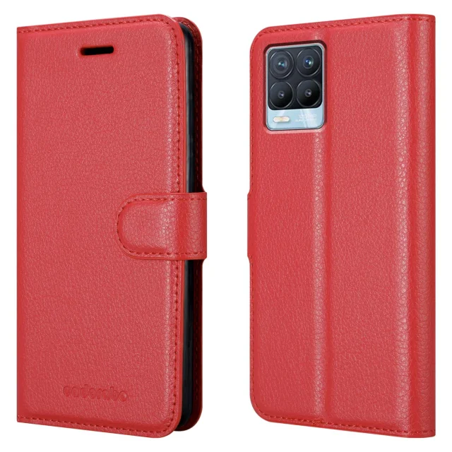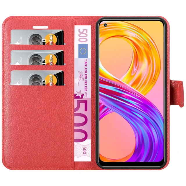 Cadorabo Case, združljiv z Realme v Candy Apple Red - Zaščitni pokrov z magnetnim zapiranjem, stoječo funkcijo in režo za kartico