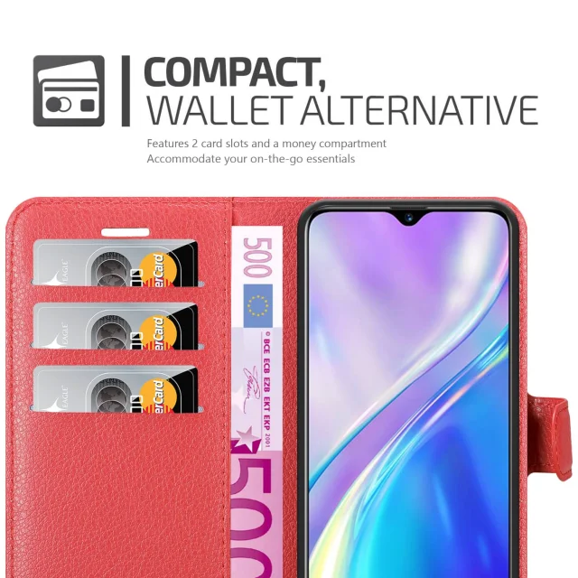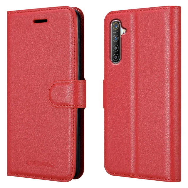 Cadorabo Case, združljiv z Realme v Candy Apple Red - Zaščitni pokrov z magnetnim zapiranjem, stoječo funkcijo in režo za kartico