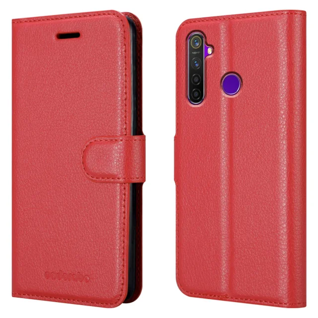 Cadorabo Case, združljiv z Realme v Candy Apple Red - Zaščitni pokrov z magnetnim zapiranjem, stoječo funkcijo in režo za kartico