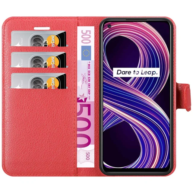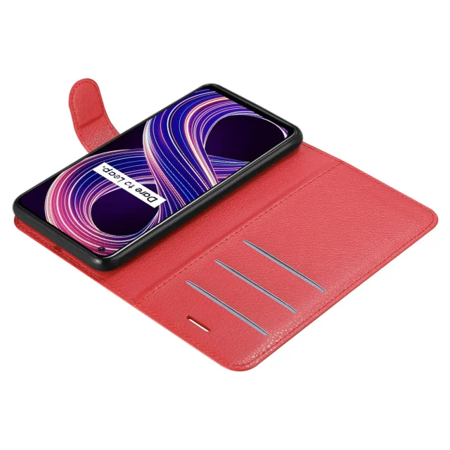 Cadorabo Case, združljiv z Realme v Candy Apple Red - Zaščitni pokrov z magnetnim zapiranjem, stoječo funkcijo in režo za kartico