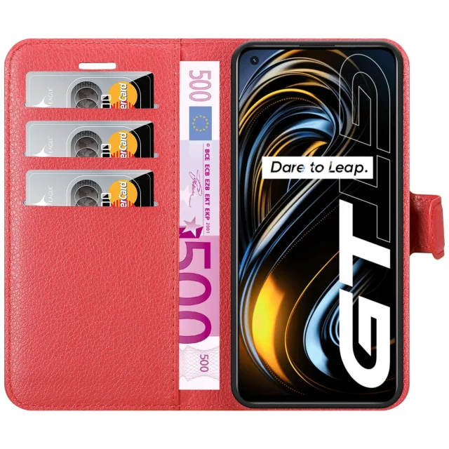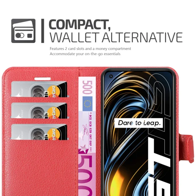 Cadorabo Case, združljiv z Realme v Candy Apple Red - Zaščitni pokrov z magnetnim zapiranjem, stoječo funkcijo in režo za kartico