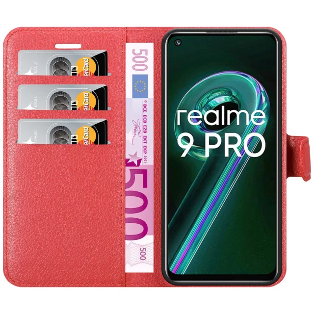 Cadorabo Case, združljiv z Realme v Candy Apple Red - Zaščitni pokrov z magnetnim zapiranjem, stoječo funkcijo in režo za kartico