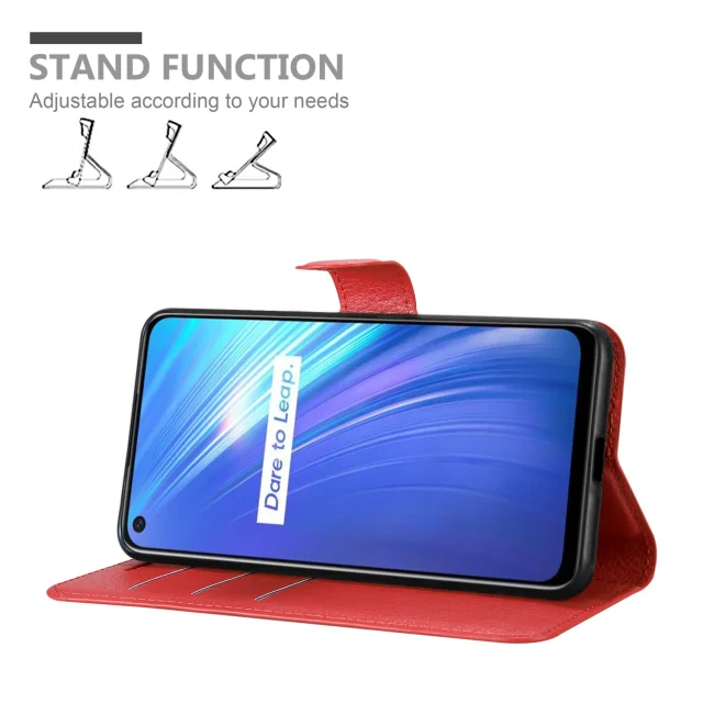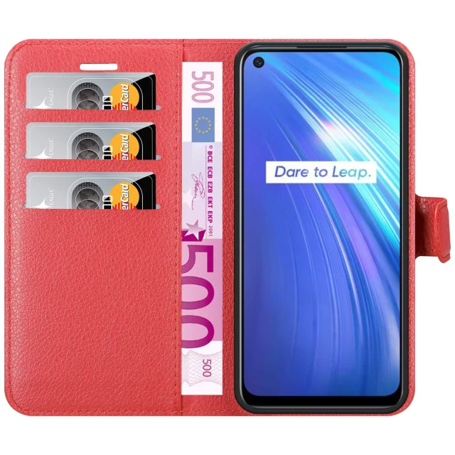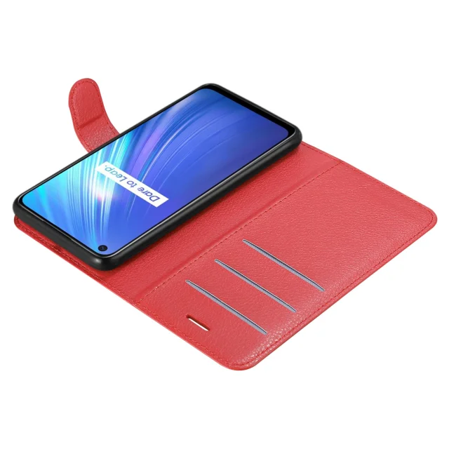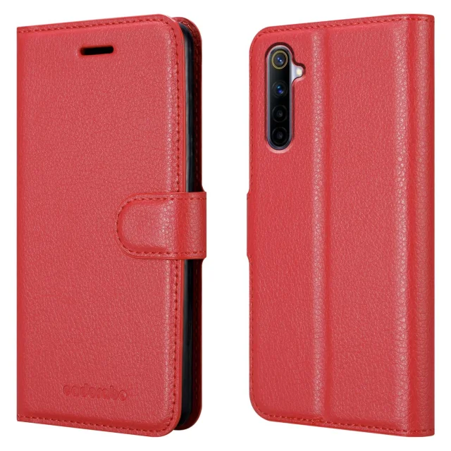 Cadorabo Case, združljiv z Realme v Candy Apple Red - Zaščitni pokrov z magnetnim zapiranjem, stoječo funkcijo in režo za kartico