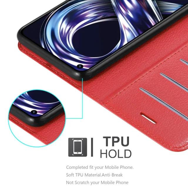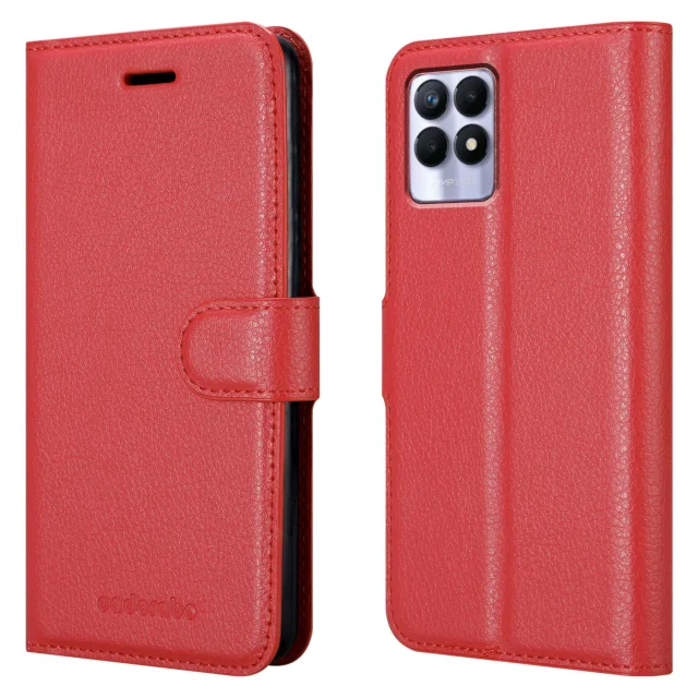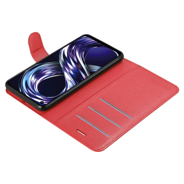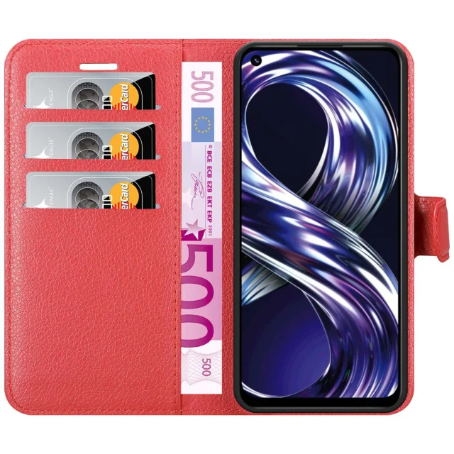Cadorabo Case, združljiv z Realme v Candy Apple Red - Zaščitni pokrov z magnetnim zapiranjem, stoječo funkcijo in režo za kartico