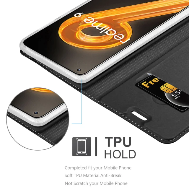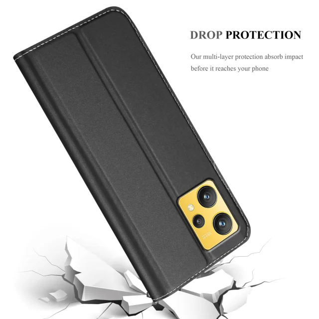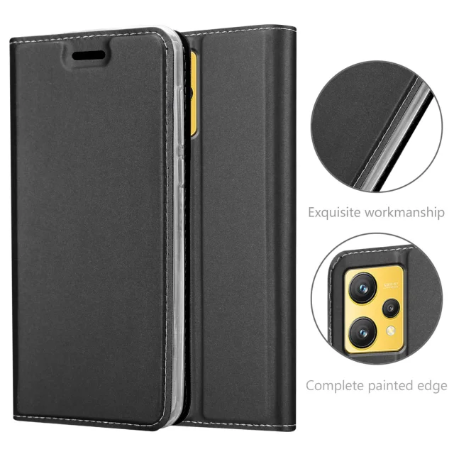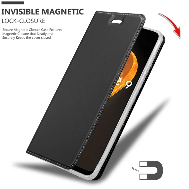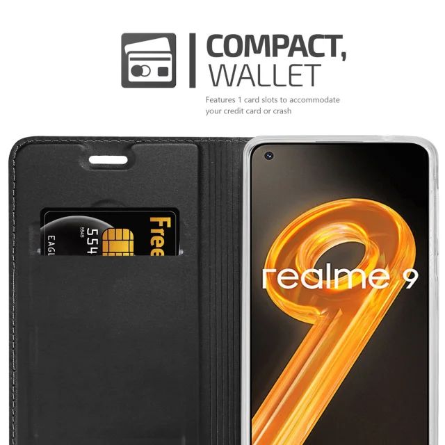 Cadorabo Case, združljiv z Realme v elegantnem črnem - zaščitnem pokrovu z magnetnim zapiranjem, stoječo funkcijo in režo za kartico