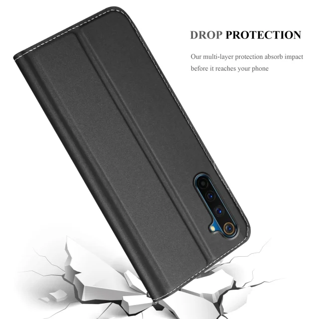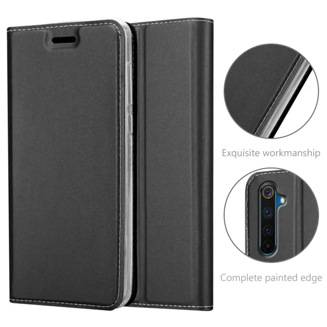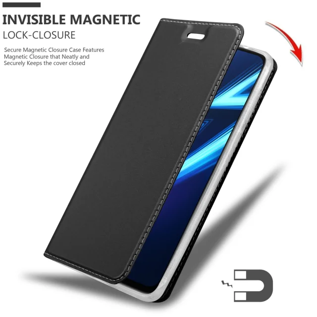 Cadorabo Case, združljiv z Realme v elegantnem črnem - zaščitnem pokrovu z magnetnim zapiranjem, stoječo funkcijo in režo za kartico