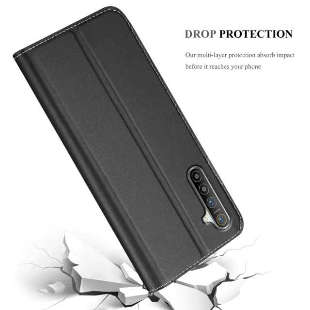Cadorabo Case, združljiv z Realme v elegantnem črnem - zaščitnem pokrovu z magnetnim zapiranjem, stoječo funkcijo in režo za kartico