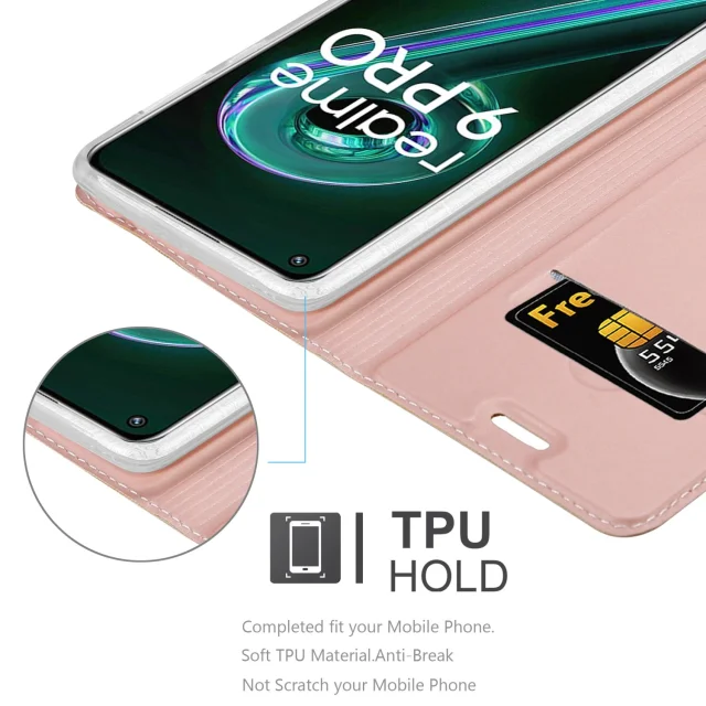 Cadorabo Case, združljiv z Realme v elegantnem rosă ‰ Gold - zaščitni pokrov z magnetnim zapiranjem, stoječo funkcijo in režo za kartico