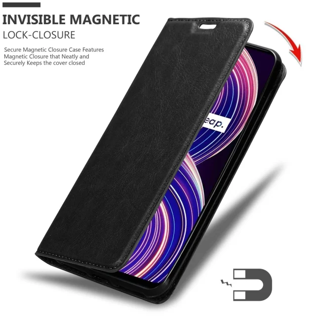 Cadorabo Case, združljiv z Realme v nočni črni barvi - zaščitni pokrov z magnetnim zapiranjem, stoječo funkcijo in režo za kartico