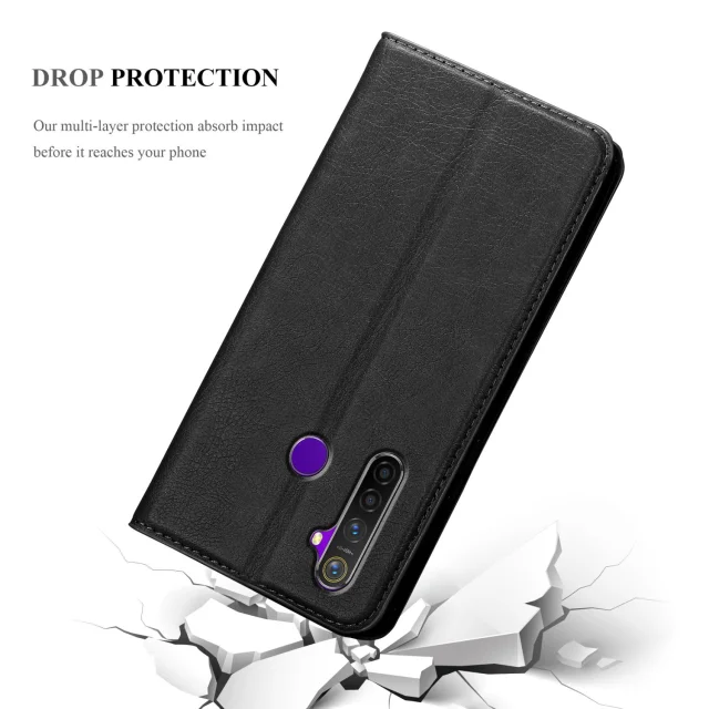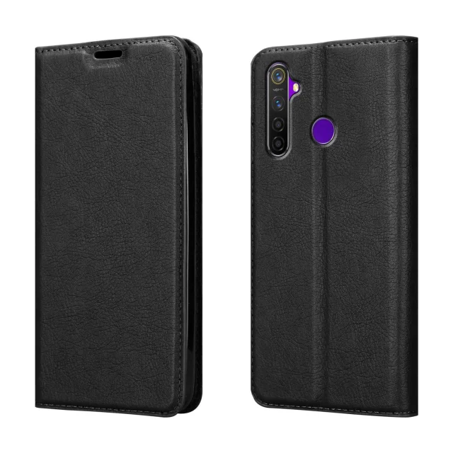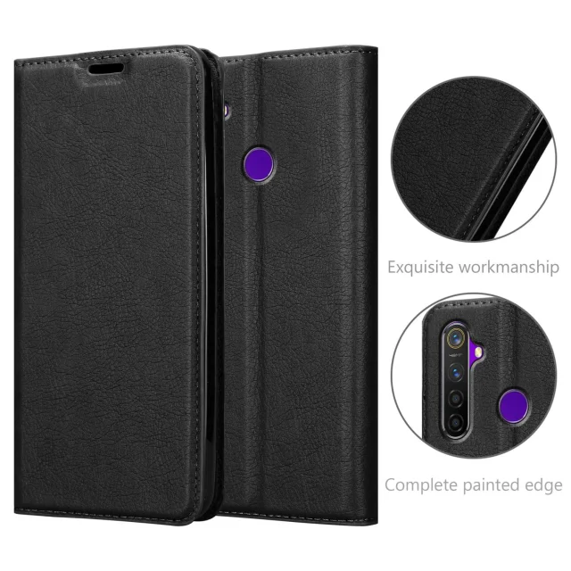 Cadorabo Case, združljiv z Realme v nočni črni barvi - zaščitni pokrov z magnetnim zapiranjem, stoječo funkcijo in režo za kartico