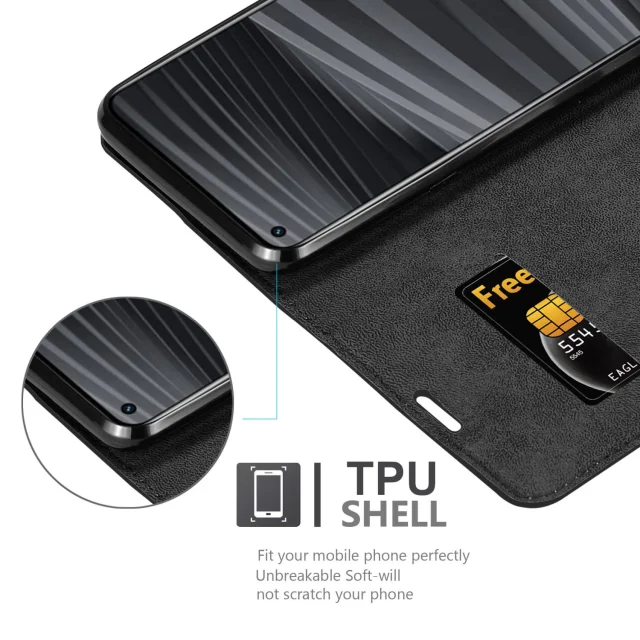 Cadorabo Case, združljiv z Realme v nočni črni barvi - zaščitni pokrov z magnetnim zapiranjem, stoječo funkcijo in režo za kartico