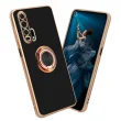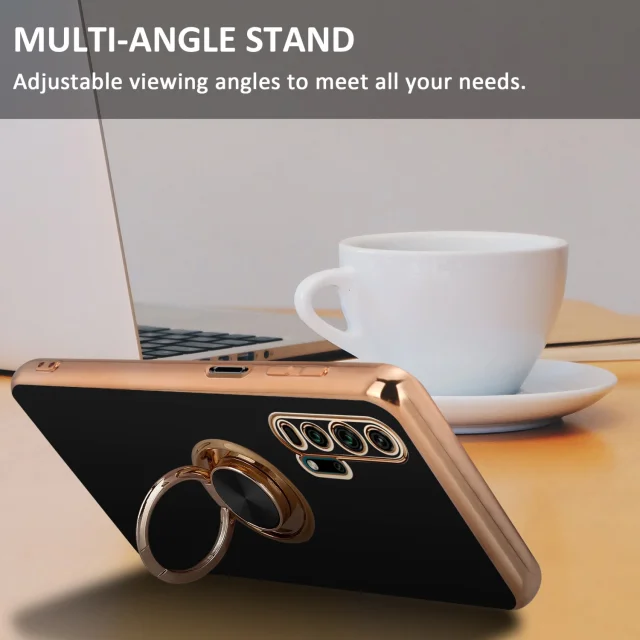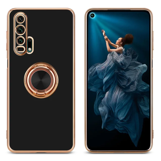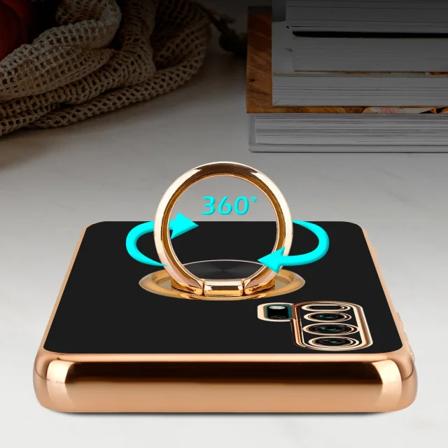 CADORABO častjo v sijajnem črni barvi - zlato z obročem silikonski/TPU ovitek z zaščito pred kamero in držalom magnetnega avtomobila