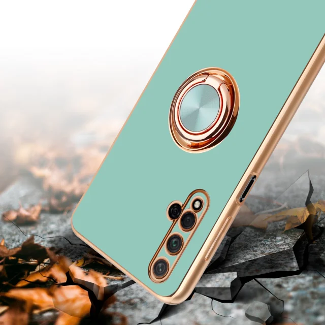 CADORABO častjo v sijajni turkiznici - zlato z obročem silikonski/TPU ovitek z zaščito pred kamero in držalo magnetnega avtomobila