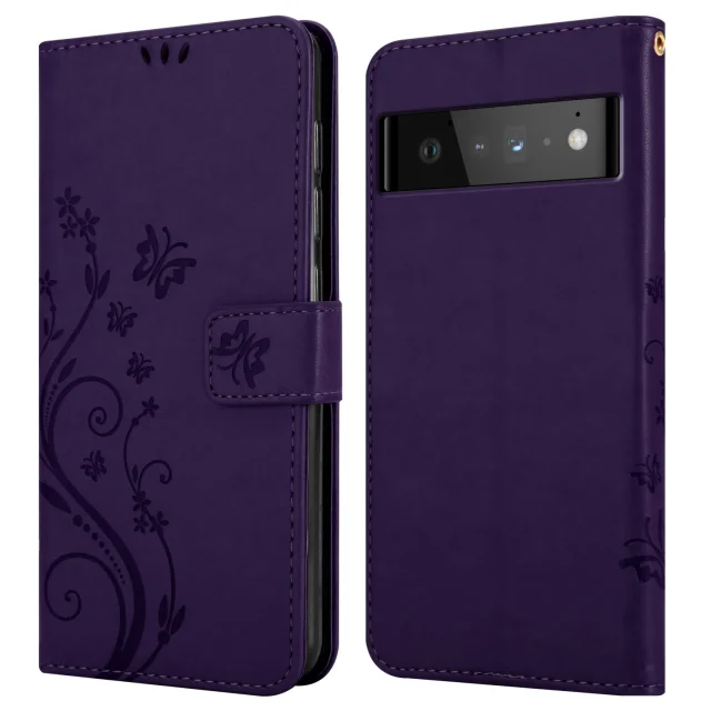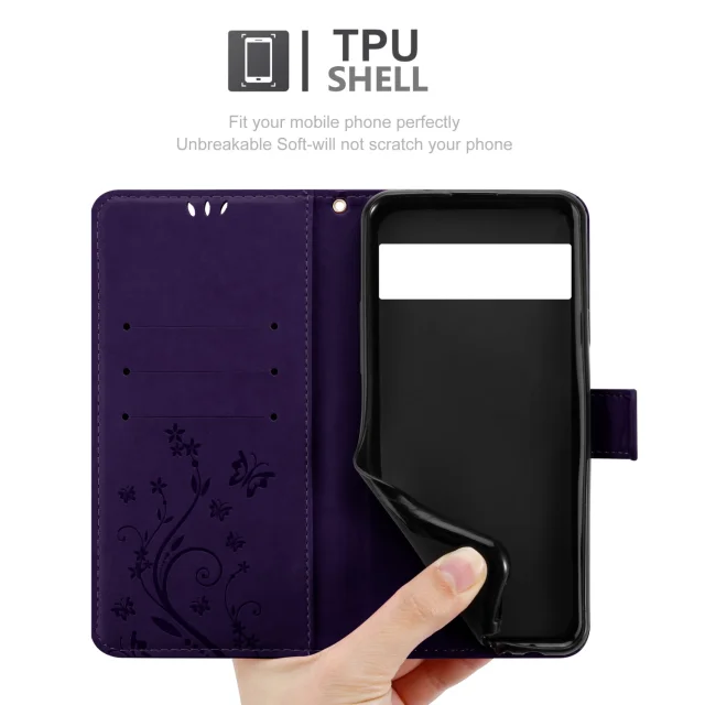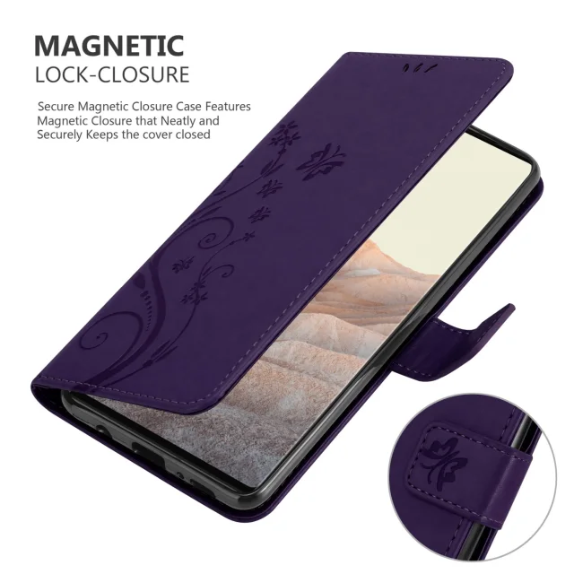 CADORABO Googlom temno vijolična - zaščitni pokrov pri oblikovanju cvetja z magnetnim zapiranjem, stoječimi funkcijami in režami za kartice