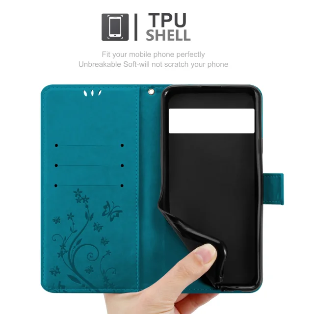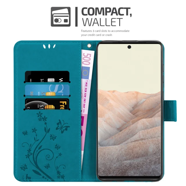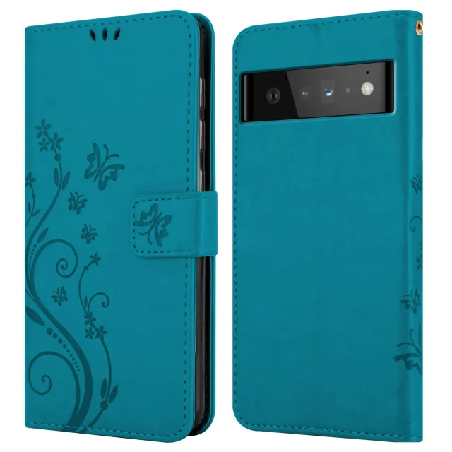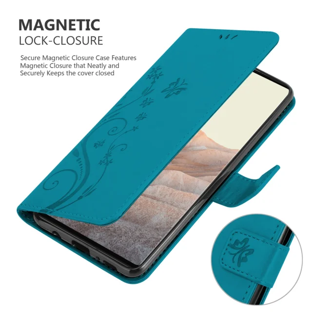 CADORABO Googlom v cvetlični modri barvi - zaščitni pokrov pri oblikovanju cvetja z magnetnim zapiranjem, stoječimi funkcijami in režami za kartice