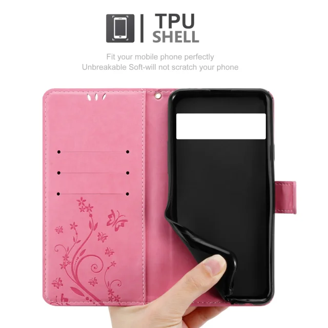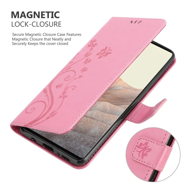 CADORABO Googlom v cvetlični roza barvi - zaščitni pokrov pri oblikovanju cvetja z magnetnim zapiranjem, stoječimi funkcijami in režami za kartice