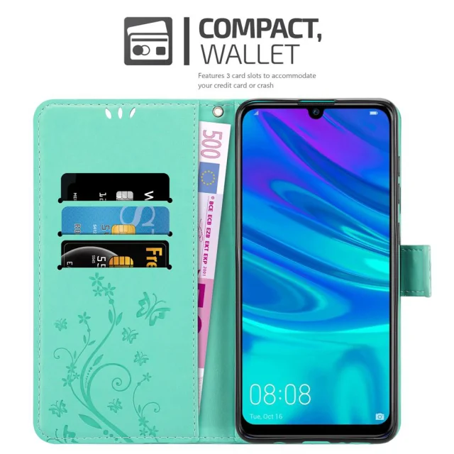 CADORABO Honor 10 LITE/Huawei P SMART 2019 srebrna - ovitek v cvetličnem dizajnu z magnetnim zapiranjem, stoječo funkcijo in režami za kartice