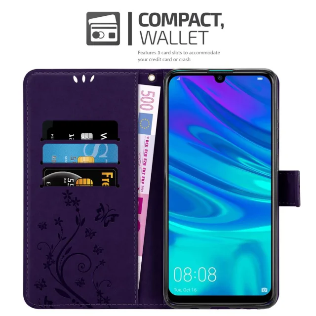 CADORABO Honor 10 LITE/Huawei P SMART 2019 temno modra - ovitek v cvetličnem dizajnu z magnetnim zapiranjem, stoječo funkcijo in režami za kartice