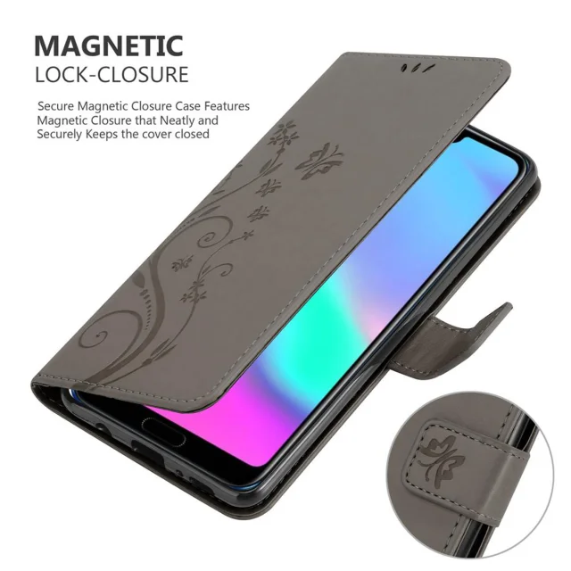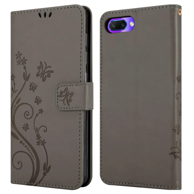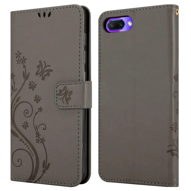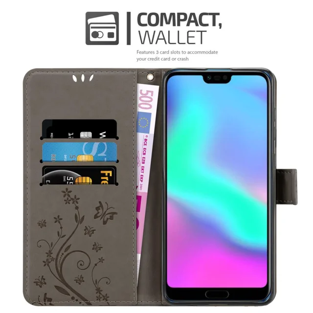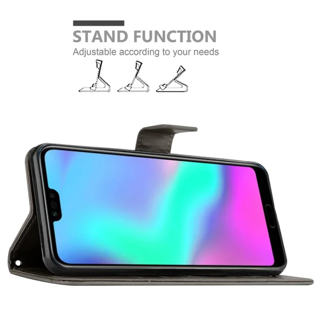 CADORABO Honor 10 v klasična črna - ovitek v cvetličnem dizajnu z magnetnim zapiranjem, stoječo funkcijo in režami za kartice