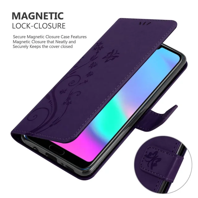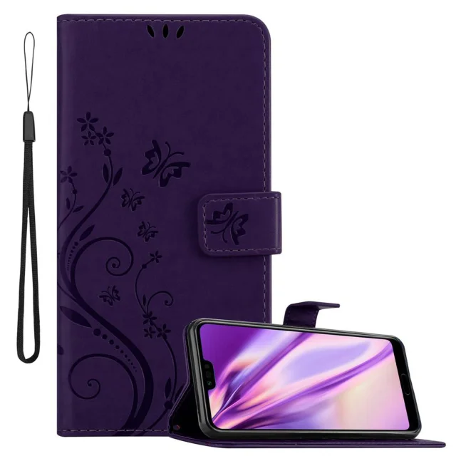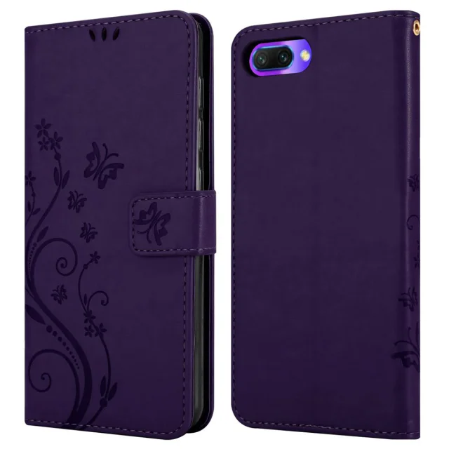 CADORABO Honor 10 v klasična temno modra - ovitek v cvetličnem dizajnu z magnetnim zapiranjem, stoječo funkcijo in režami za kartice