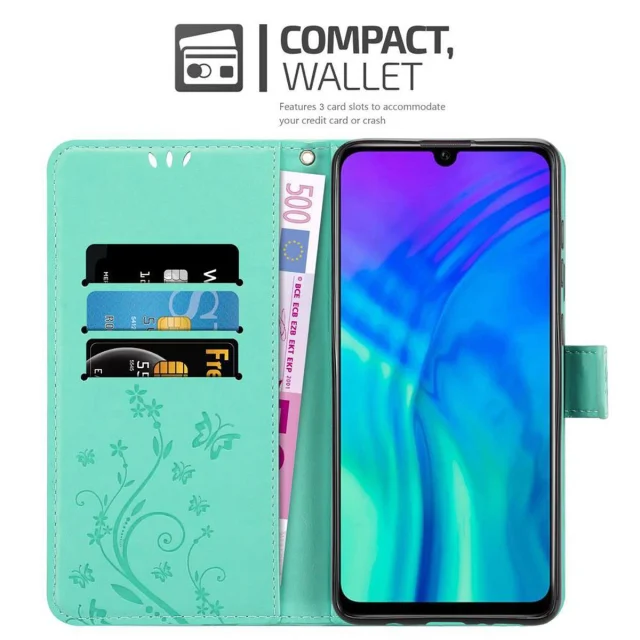 CADORABO Honor 10i/20i/20 LITE/Huawei Enjoy 9S srebrna - ovitek v cvetličnem dizajnu z magnetnim zapiranjem, stoječo funkcijo in režami za kart